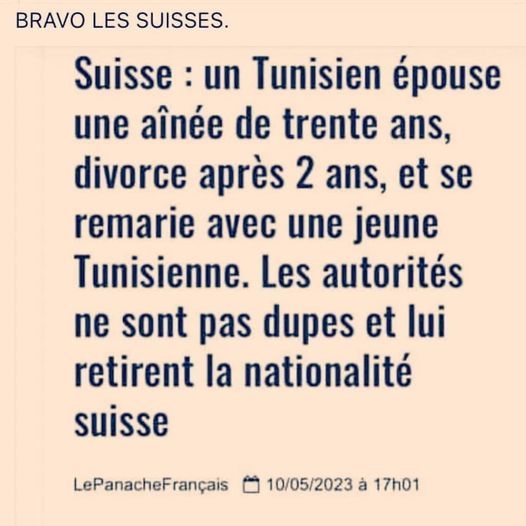 De plus c'est pas tabou comme en france mais normal de se faire tej, en suisse vous oubliez que chaque citoyen peut déposer un projet de loi et transformer par exemple la suisse en califat islamique des alpes