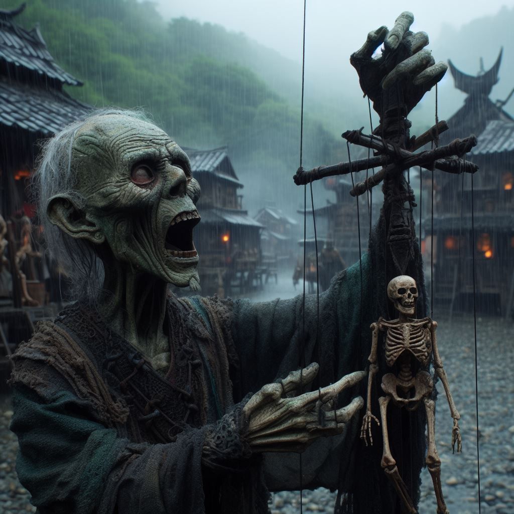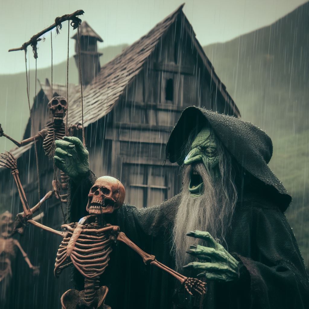 Il ce sert de son squelette de poche. Poussant des cris lugubre
