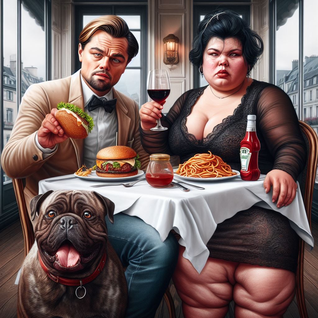 Gerard Depardieu qui mange une baleine dans un style réaliste