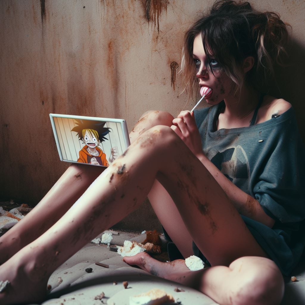 j'ai demandé une fille dépressif regarde one piece on a une sale à trois jambes qui suce