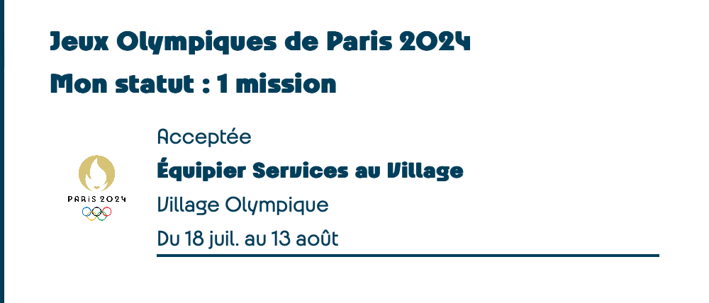 Et vu que j'ai pas eu de places, billets bah je vivrai les jeux en tant que volontaire