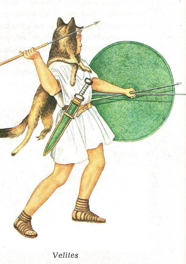Les tirailleurs romains, en majorité des javeliniers, sont appelés "Velites" :