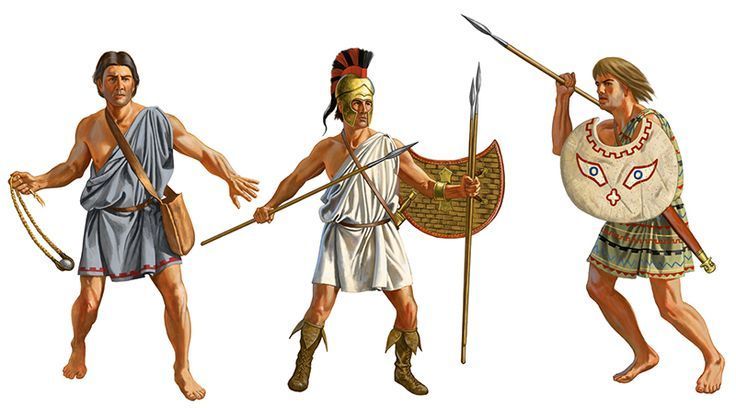 Les frondeurs et les javeliniers sont souvent peu présent dans les récits des grandes batailles de l'antiquité, ses troupes sont souvent considérés de peu de valeurs parce que ils sont issus de la classe la plus pauvre des sociétés antique. Le temps ou les soldats payaient leur équipement et une grande partie de l'armée était une levée de troupes, les soldats les plus pauvres servaient en tant que tirailleurs, leur rôle était de tirer sur les troupes adverses avant l'engagement des fantassins ou des phalanges. Les tirailleurs se retiraient à l'arrière de la première ligne.