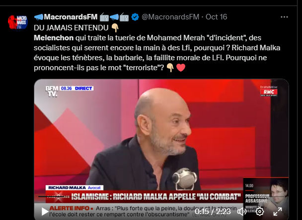 Melenchon qui traite la tuerie de Mohamed Merah "d'incident", des socialistes qui serrent encore la main à des Lfi, pourquoi ? Richard Malka évoque les ténèbres, la barbarie, la faillite morale de LFI. Pourquoi ne prononcent-ils pas le mot "terroriste"? 👇🏼❤️