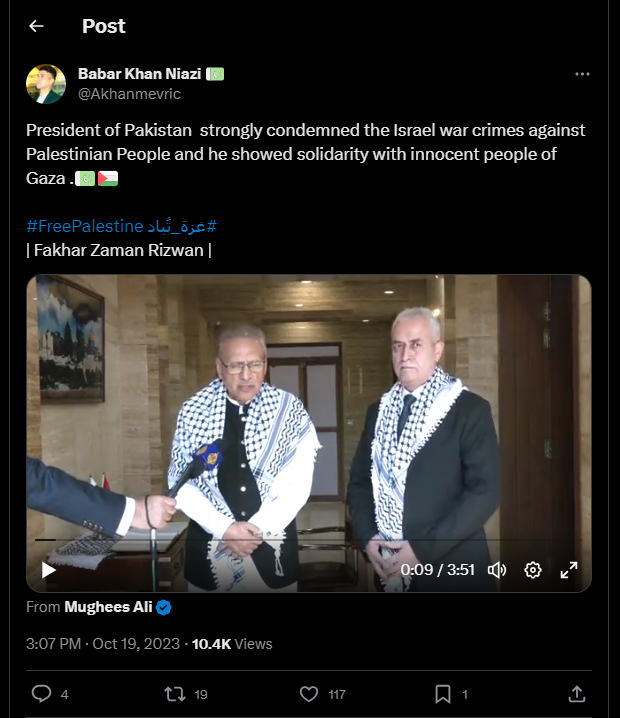 Le président du Pakistan a fermement condamné les crimes de guerre israéliens contre le peuple palestinien et a fait preuve de solidarité avec le peuple innocent de Gaza.