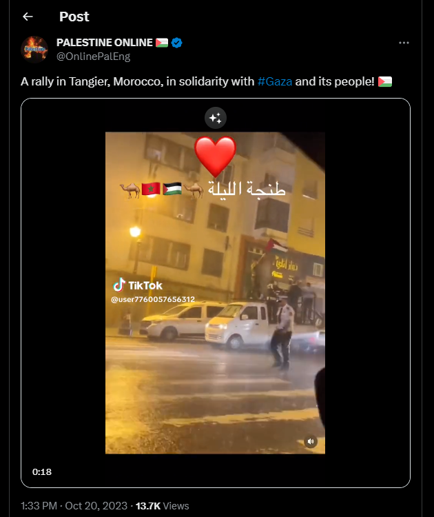 Un rassemblement à Tanger, au Maroc, en solidarité avec #Gaza et sa population !