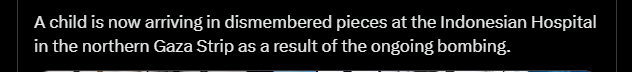 Un enfant arrive maintenant en morceaux à l'hôpital indonésien du nord de la bande de Gaza à la suite des bombardements en cours.