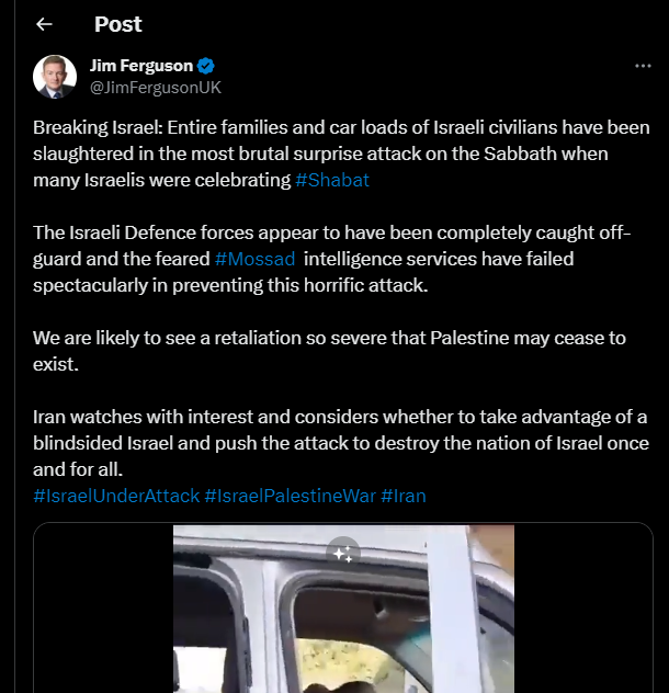 Briser Israël : Des familles entières et des voitures entières de civils israéliens ont été massacrées lors de l'attaque surprise la plus brutale du sabbat alors que de nombreux Israéliens célébraient le #Shabat.