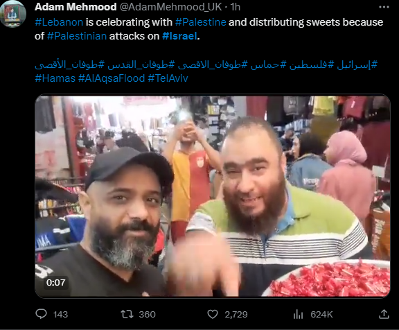 Le #Liban fait la fête avec la #Palestine et distribue des bonbons à cause des attaques #palestiniennes contre #Israël.