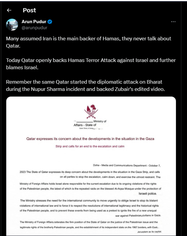 Rappelez-vous que le Qatar a lancé l'attaque diplomatique contre Bharat lors de l'incident de Nupur Sharma et a soutenu la vidéo montée de Zubair.