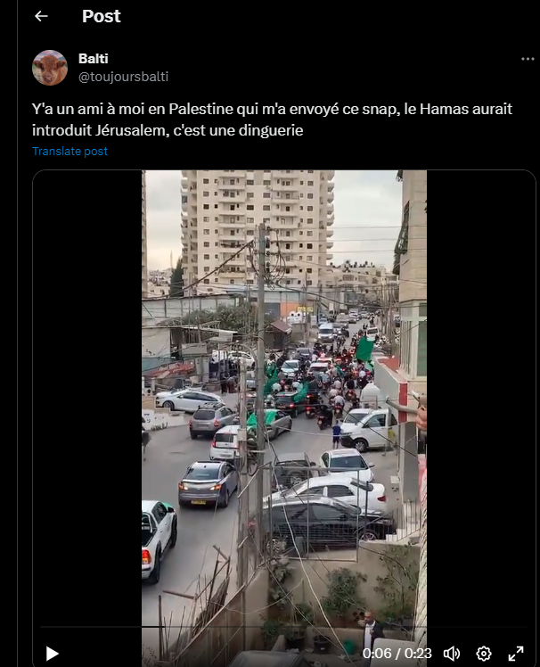 Y'a un ami à moi en Palestine qui m'a envoyé ce snap, le Hamas aurait introduit Jérusalem, c'est une dinguerie