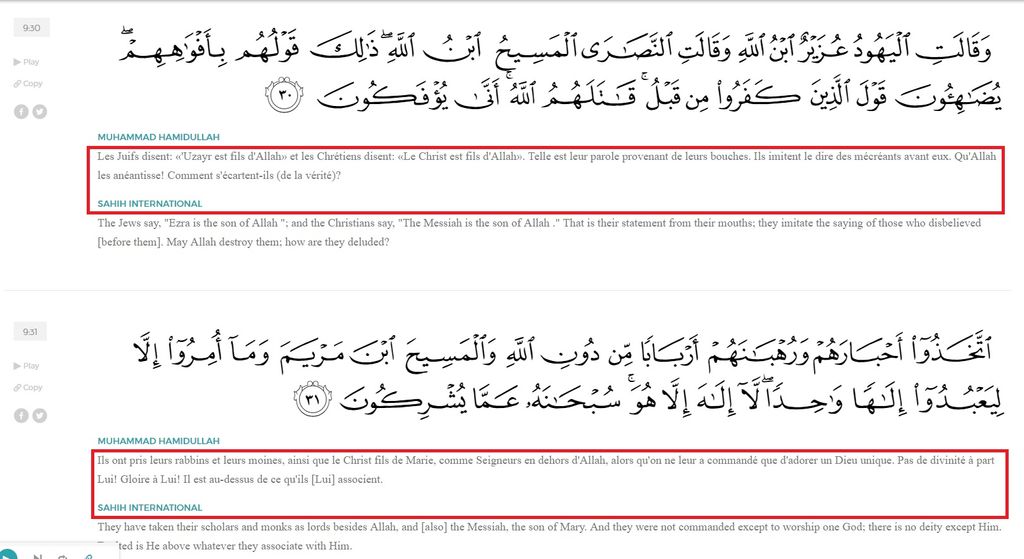 Pour rappel dans le Coran :