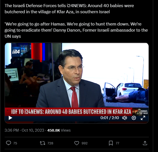 Les Forces de défense israéliennes déclarent à i24NEWS : Une quarantaine de bébés ont été massacrés dans le village de Kfar Aza, dans le sud d'Israël