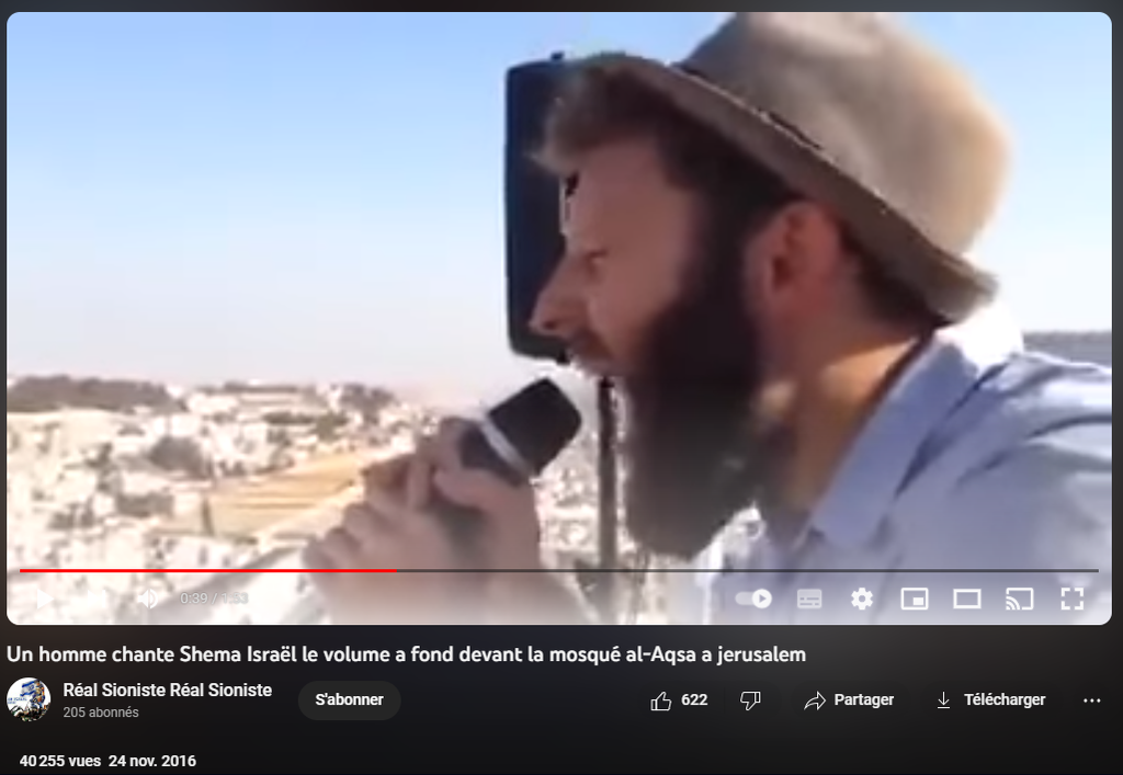 Un homme chante Shema Israël le volume a fond devant la mosqué al-Aqsa a jerusalem