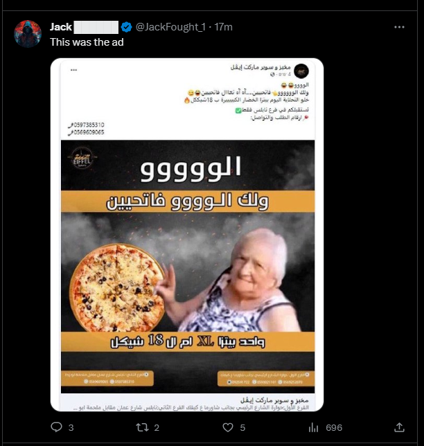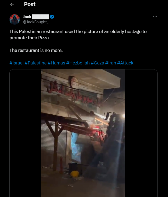 Ce restaurant palestinien a utilisé la photo d'une otage âgée pour promouvoir sa pizza.