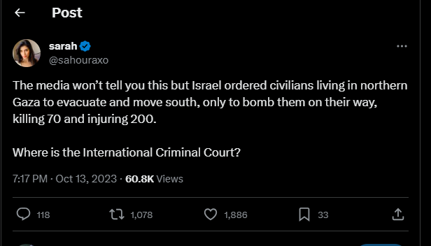 Les médias ne vous le diront pas, mais Israël a ordonné aux civils vivant dans le nord de Gaza d’évacuer et de se déplacer vers le sud, pour ensuite les bombarder sur leur chemin, tuant 70 personnes et en blessant 200 autres.