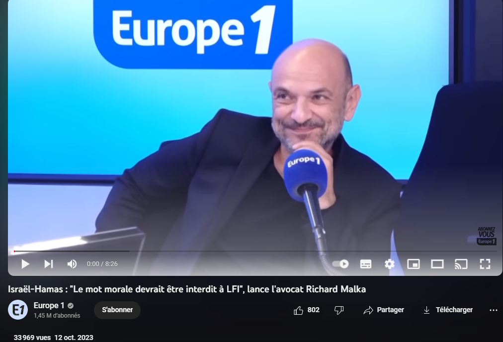 Israël-Hamas : "Le mot morale devrait être interdit à LFI", lance l'avocat Richard Malka