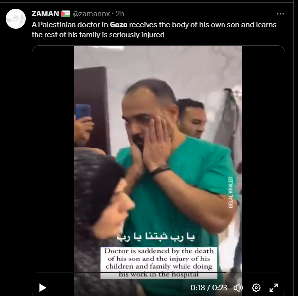 Un médecin palestinien à Gaza reçoit le corps de son propre fils et apprend que le reste de sa famille est grièvement blessé