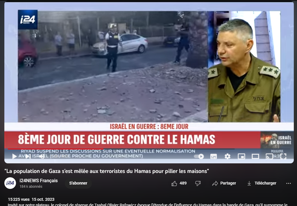"La population de Gaza s'est mêlée aux terroristes du Hamas pour piller les maisons"