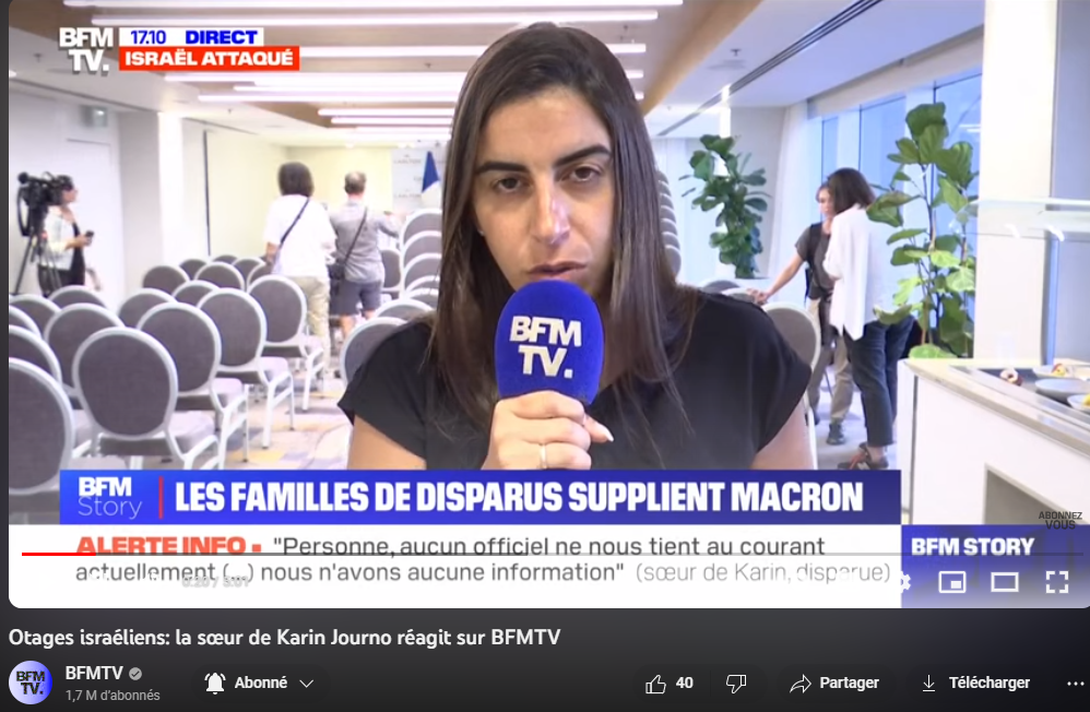 Otages israéliens: la sœur de Karin Journo réagit sur BFMTV