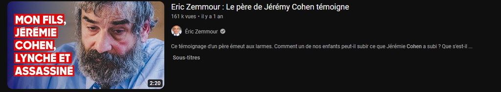 Eric Zemmour : Le père de Jérémy Cohen témoigne