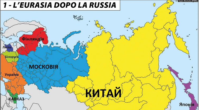 La carte de 2022, est celle ci. Le Kyev Post n'a fait que rendre d'une réunion qui s'était déroulée. Une réunion tenue par une association qui s'appelle le Free Nations of Russia Forum. C'est le forum des nations libres de la Russie. Cette association part du principe qu'il s'agit d'un pays de 144 millions d'habitants mais d'un peuple qui n'a pas procédé à un processus d'intériorisation ou de décolonisation. Les objectifs du forum sont la reconstruction et la transformation structurelle de la Russie, du développement économique et politique des régions et des autonomies. L'objectif est soit disant de défendre le bien être des habitants et leurs libertés. Il imagine des nations post poutine avec des administrations transitions. Ils réfléchissent à la manière d'éviter un effondrement trop marqué dans les secteurs clés. Cela comprend notamment la question de la démilitarisation et de l'arsenal nucléaire. Il s'agit de bâtir une nouvelle architecture de sécurité européenne. Il s'agit également s'assurer l'existence de ces républiques qui seront issues du démembrement de la Russie avec leurs voisins. Parmi les objectifs du forum il y a la désimpérialisation et la décolonisation soit disant. A cela s'ajoute des projets de dépoutinisation, de démilitarisation et de décluéarisation. Avec les changements économiques et sociaux qui vont avec. Le président de l'association s'appelle Andrius Almanis qui est né en URSS et qui a tenu un premier forum les 8 et 9 mai 2022 en Varsovie. Il y a un deuxième forum qui s'est tenu les 22 et 23 juillet 2022 à Prague. Le directeur général de l'association s'appelle Vadim Shtepa. Il vit en Lettonie me semble il.