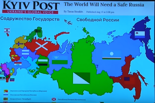 Sur le site de 24 TV Ukrainien est paru un article intéressant à ce sujet d'ailleurs. C'est une des plus grandes chaînes de télévisions ukrainiennes. Et qui rend compte de ce deuxième forum et qui rend compte de la fameuse carte de 2022. Dans cet article il est écrit qu'une disparition de la Russie se prépare. Des élites et des intellectuels financés par les Etats Unis d'Amérique s'y préparent. L'événement selon l'article, a pour but de faire savoir à nos alliés occidentaux qu'il sera plus facile pour le monde de se redresser lorsque la Russie s'effondrera. l'organisateur était l'institut letton des régions de Russie. A se demander ce que fait là un membre de l'Union européenne a qui on donne d'ailleurs plusieurs millions par an, tout ça pour soutenir directement ou indirectement une organisation ayant des visées régionalistes, sachant que d'autres organisations du genre visent l'Europe de l'Ouest et du centre également, dont la France. Avec célébration des Waffen SS chaque année en Lettonie. Les représentants de l'institution selon l'article, pensent que c'est le meilleur moment pour agir activement et à changer la situation. l'institut est convaincu que les peuples de Russie ont un droit complet à leur propre Etats nationaux. Et du droit de posséder et de disposer de ses ressources naturelles et autres avantages qui sont caractéristiques de leurs républiques. Le député ukrainien du parti présidentiel Oleg Dunda faisait partie de ce forum. Il a expliqué le but de ce forum dans une liaison de Prague au site web de Channel 24 en Ukraine. Je le cite : " Nous devons faire comprendre au monde l'extrême nécessité de la disparition de la Russie en tant qu'Etat. il a donné l'importance de former dans la conscience collective de l'Occident l'attitude selon laquelle la Russie doit inévitablement disparaître de la surface de la terre.