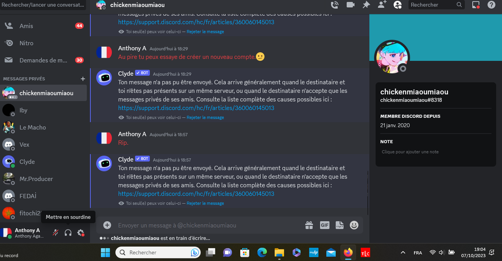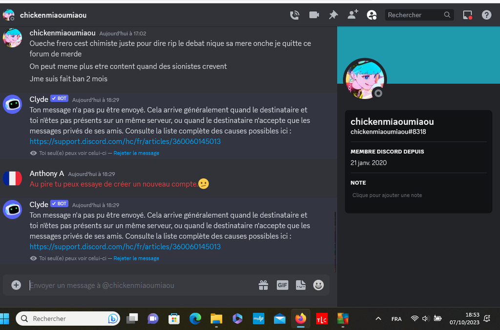 Je n'arrive pas à lui envoyer un mp alors qu'avant je pouvais.