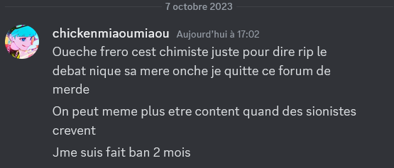 Incarcération de Chimiste pour une durée de 2 mois pour le motif « Grosse merde qui se réjouit des morts »