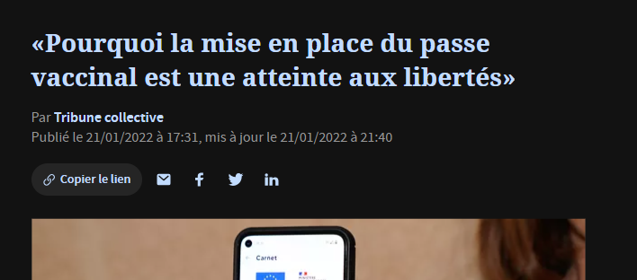«Pourquoi la mise en place du passe vaccinal est une atteinte aux libertés»