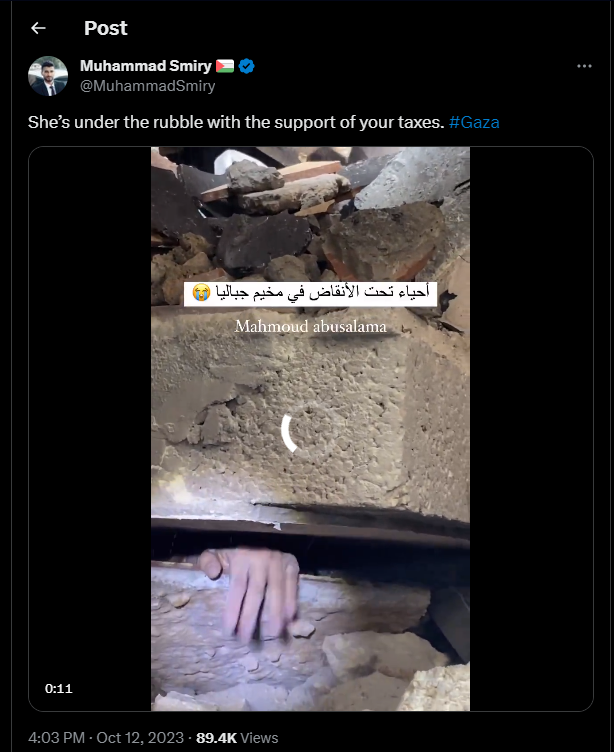 Elle est sous les décombres avec le soutien de vos impôts. #Gaza