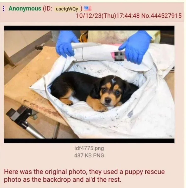 Tu mens, c'est la photo du petit chien qui a été crée par IA, sur la base de la photo du tas de cendres