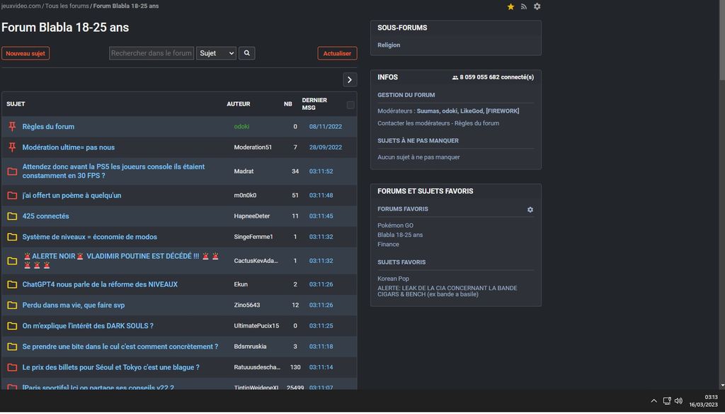 je recharge la page ca fait 1topic nouveau par minute