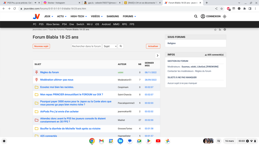 Meme déconnecté le fait d'être sur les topics est peut être compatabiliser