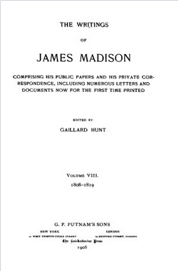 Source : " The Life and Writings of James Madison " Volume 8, New York : Putnam's Sons, 1908. Page 327. Hunt, Gaillard.