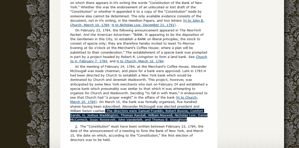 Pour ce qui est d'Hamilton, de la Bank of New York et de William Maxwell :