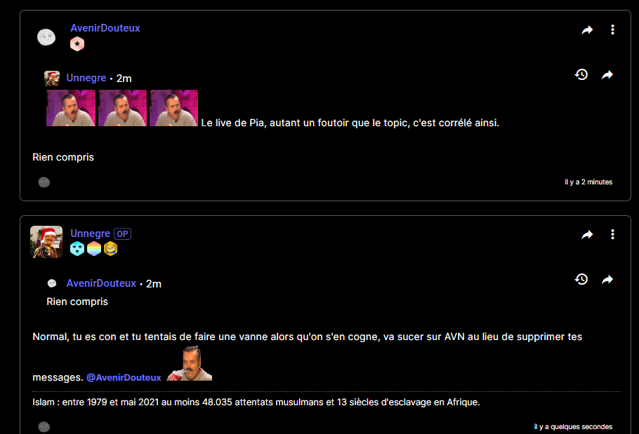 Normal, tu es con et tu tentais de faire une vanne alors qu'on s'en cogne, va sucer sur AVN au lieu de supprimer tes messages. @AvenirDouteux