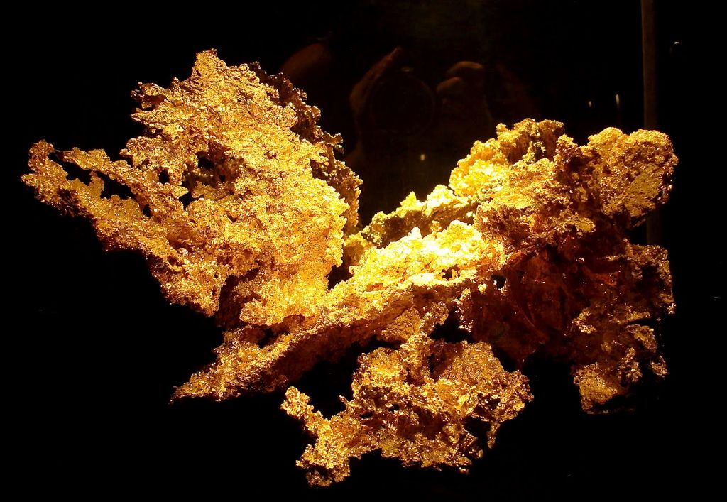 Fricot Nugget, pépite de 5,69kg trouvée en 1865, conservée au California State Mining and Mineral Museum.