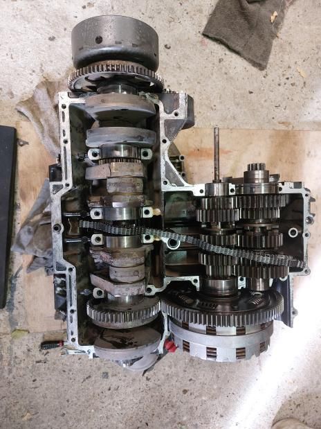 C'est la chaine de distribution, qui est a sa place. Normalement elle ressort de l'autre côté du moteur.