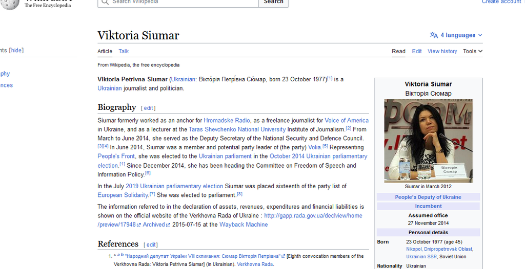 "Siumar formerly worked as an anchor for Hromadske Radio, as a freelance journalist for Voice of America in Ukraine"