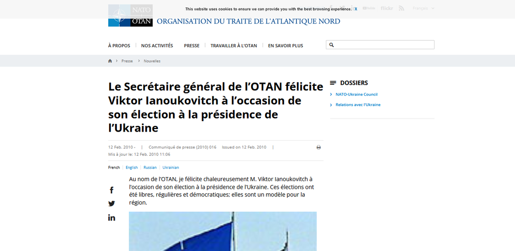 Pour rappel, l'OTAN avait félicité Viktor Ianoukovitch lorsque celui avait étélu élu en 2010. Son mandat devait se terminer en 2015.