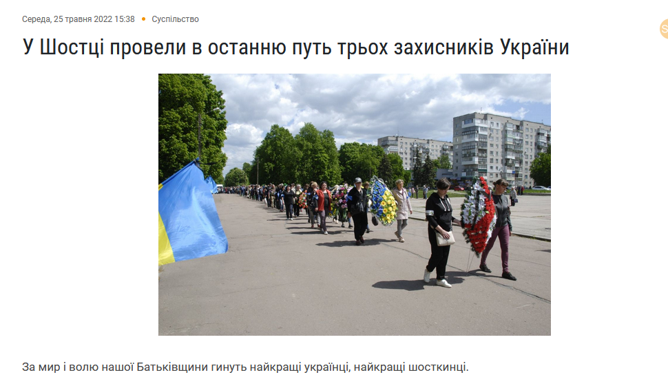 traduit de l'ukrainien en français : Les meilleurs Ukrainiens, les meilleurs habitants de Chostkine meurent pour la paix et la volonté de notre patrie.
