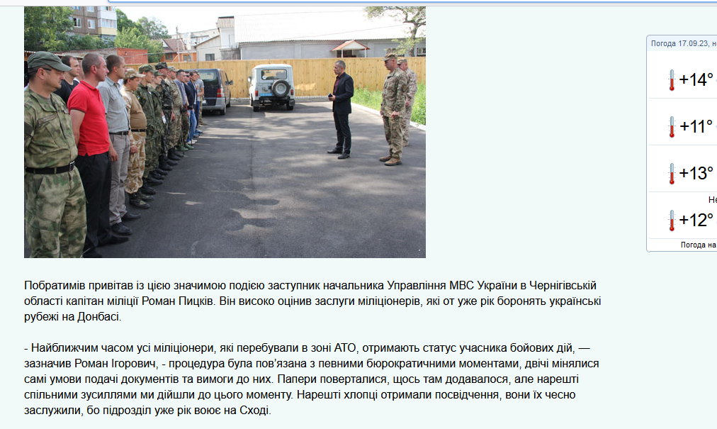 Побратимів привітав із цією значимою подією заступник начальника Управління МВС України в Чернігівській області капітан міліції Роман Пицків. Він високо оцінив заслуги міліціонерів, які от уже рік боронять українські рубежі на Донбасі.