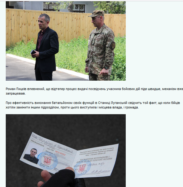 Найближчим часом усі міліціонери, які перебували в зоні АТО, отримають статус учасника бойових дій, — зазначив Роман Ігорович, - процедура була пов’язана з певними бюрократичними моментами, двічі мінялися самі умови подачі документів та вимоги до них. Папери поверталися, щось там додавалося, але нарешті спільними зусиллями ми дійшли до цього моменту. Нарешті хлопці отримали посвідчення, вони їх чесно заслужили, бо підрозділ уже рік воює на Сході.