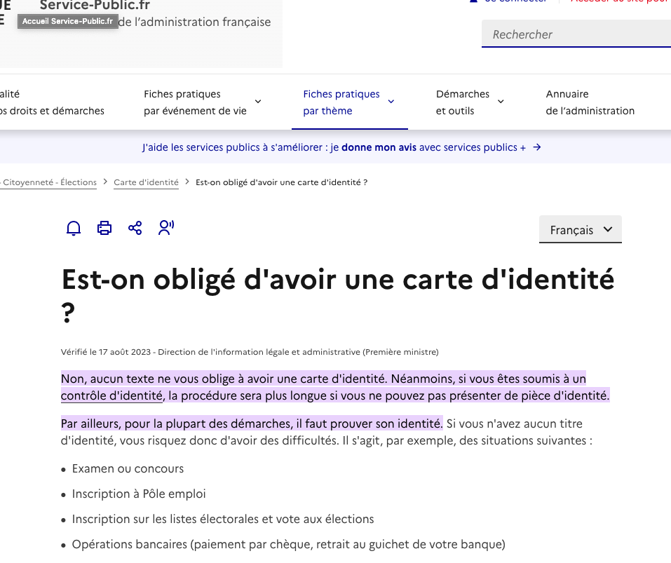 Si tu veux éviter d'aller au poste lors d'un contrôle de police pour prouver ton identité c'est mieux