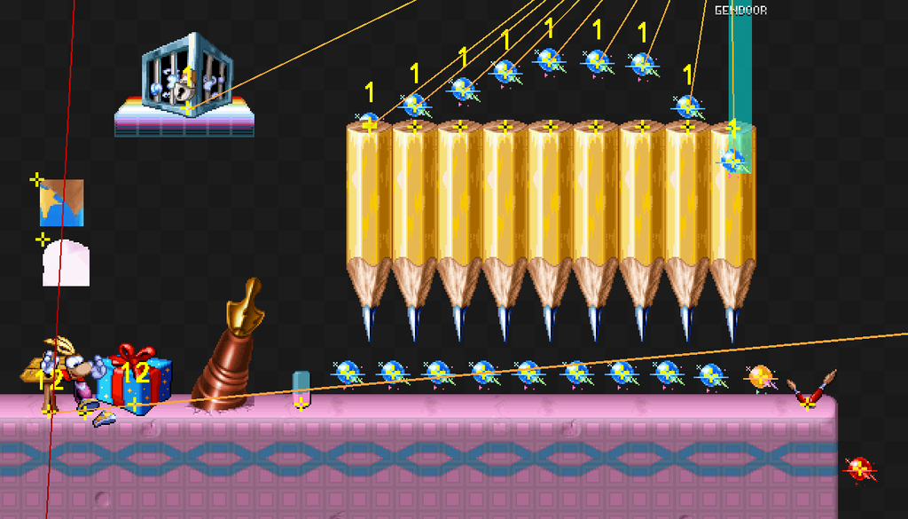 Pour l'instant j'ai les 2 premiers niveaux (6 maps en tout), j'essaye d'être clean avec 1 prison/map, 1 cadeau/niveau, des mécaniques de ting colorés logiques, des pv et des pouvoirs à débloquer au fur et à mesure