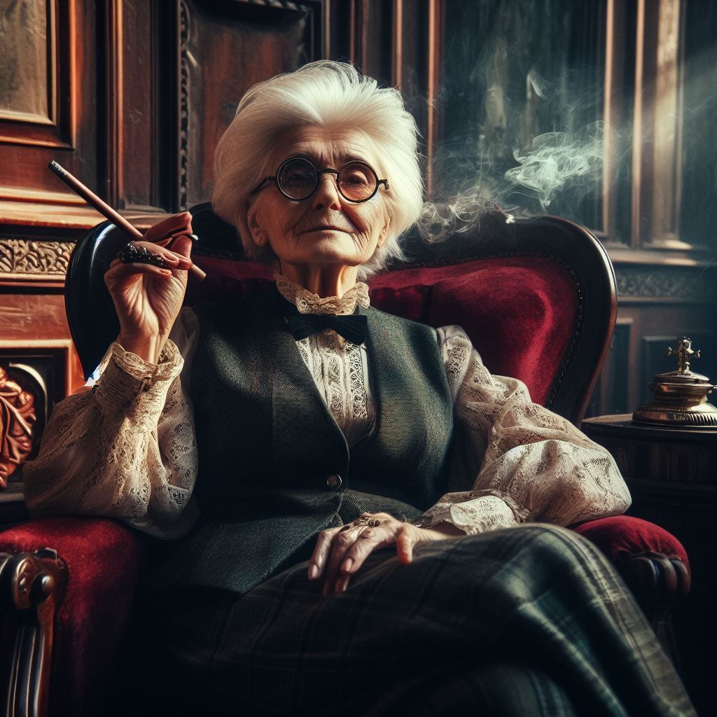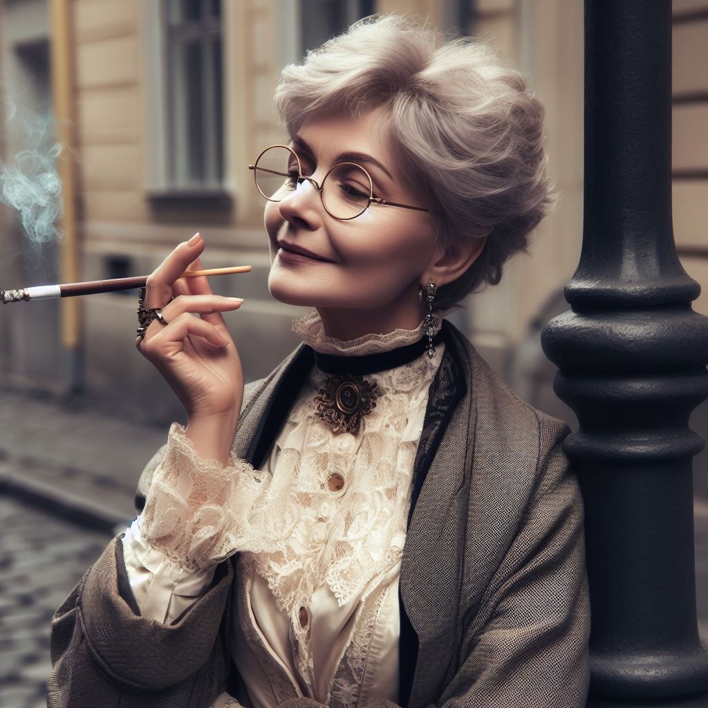 On dirait une image d une vielle prostituée fumant avec les vieux porte cigarette tres long