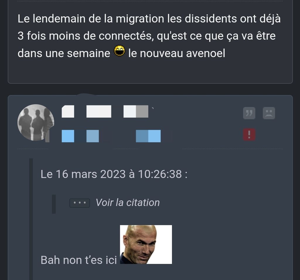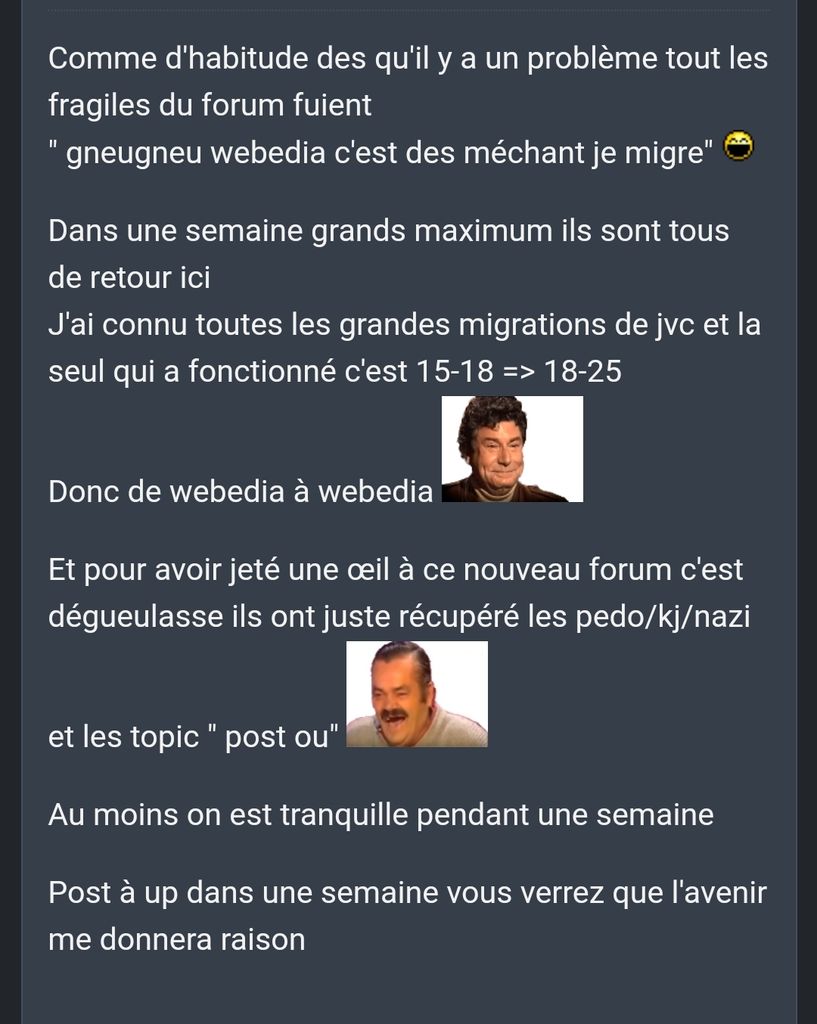 Je suis pas totalement d'accord avec ce qu'il dit mais pour le coup il y a du vrai les migration si forum ont jamais fonctionné les foromeur sont toujours revenu vers papa webedia