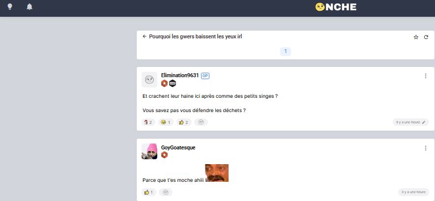 Aux bougnoules et aux nègres eux-même, qui sont la lie de l'humanité... et encore, si on peut les considérer comme humains, ce dont je ne suis pas certain