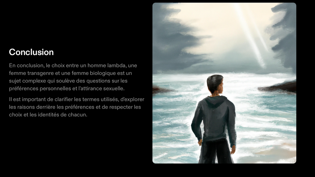 AHI jpp, j'ai juste copier coller ton message à CHATGPT, demandé de gérer un prompt, puis j'ai donné à DALL-E pour generer les images, puis a un PPT de faire la mise en page toute seule AHI